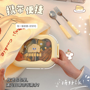 可爱奶酪便当盒304不锈钢学生分格饭盒上班族保温餐盒水果保鲜盒