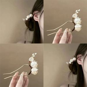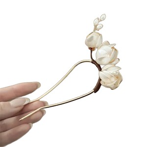 高级感玉兰花苞发簪新中式金属U型簪子温柔气质古风头饰汉服配饰