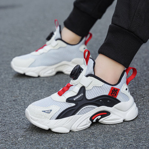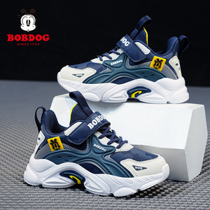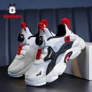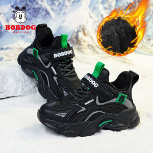 巴布豆童鞋2025秋冬新款儿童皮面防水运动鞋双网透气潮鞋加绒棉鞋
