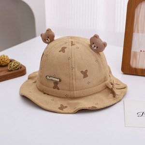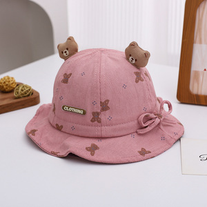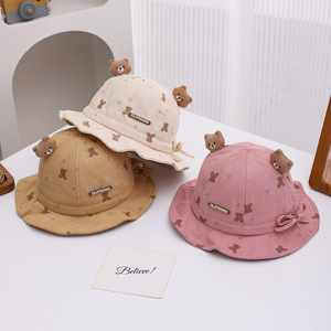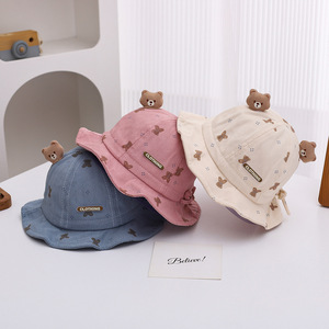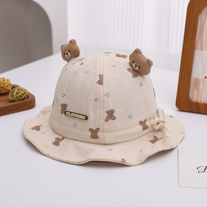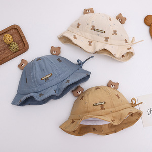 婴儿帽子可爱小熊小月龄盆帽遮阳防晒帽男女宝宝休闲百搭渔夫帽