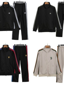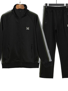 高品质Needles蝴蝶刺绣track日系休闲宽松外套直筒裤子套装男女秋