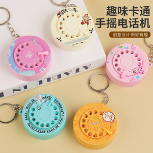 卡通趣味复古手摇电话机钥匙扣挂件解压发声玩具书包挂饰礼品批发