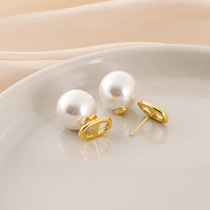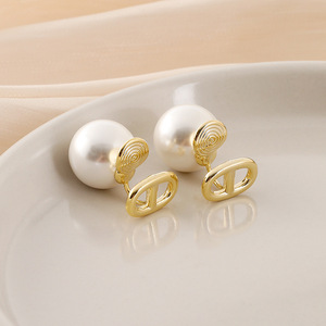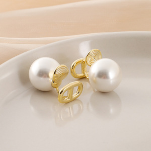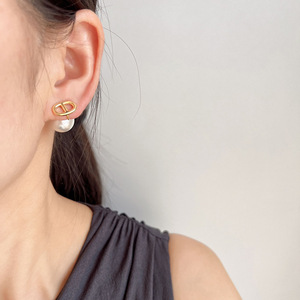 EH1490小众简约字母CD无耳洞蚊香盘耳夹轻奢气质大珍珠耳钉耳环女