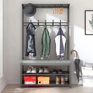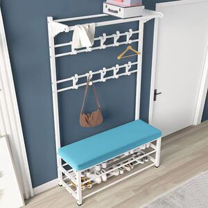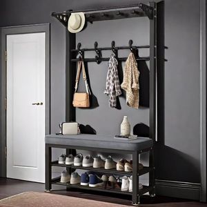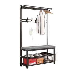 家用入户门换鞋凳挂衣架一体多功能落地门厅衣帽架玄关置物架鞋架
