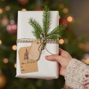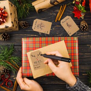 圣诞快乐牛皮纸标签贴纸 4 种风格圣诞树驯鹿礼品标签贴花自粘纸