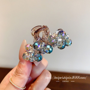 复古闪钻绿色水晶抓夹半扎小号精致发抓发夹后脑勺盘发韩国发饰品