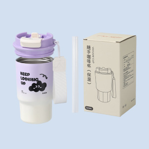 新款时尚简约咖啡杯316不锈钢高颜值提绳保温杯大容量便捷吸管杯