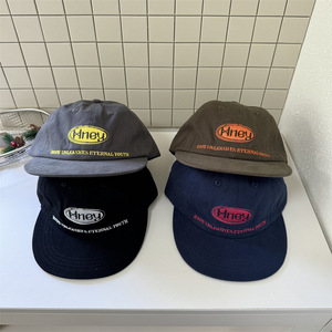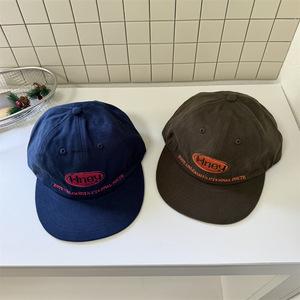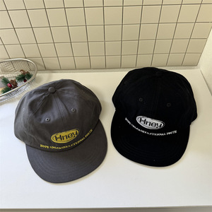 韩国小众拼色字母刺绣平檐鸭舌帽女软顶大标街头潮牌棒球帽男新款