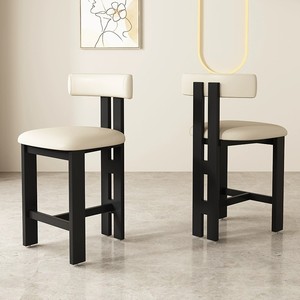 法式吧台椅中古风家用酒吧餐厅休闲高脚椅北欧设计师前台实木椅子