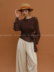 [不退不换] 莱赛尔天丝柔软亲肤绑带t恤秋季日常通勤上衣女H17922
