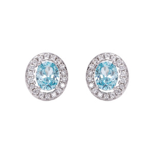 西奇S925纯银精致小巧海蓝锆耳钉女气质椭圆围镶闪钻日常通勤耳饰