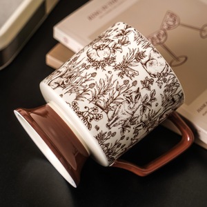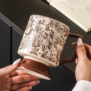 中古风陶瓷高脚马克杯单杯家用办公大容量设计感水杯咖啡杯早餐杯