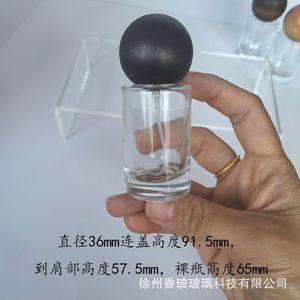 30ml圆柱;银塑卡+黑木球盖;透明玻璃
