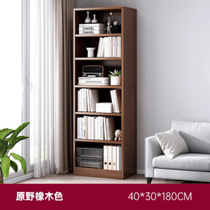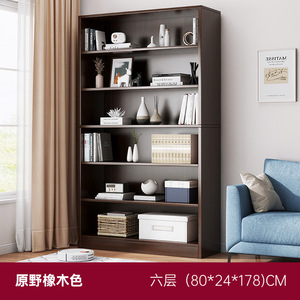 书柜整面墙落地靠墙简易胡桃木储物柜收纳家用多层放书书架置物架