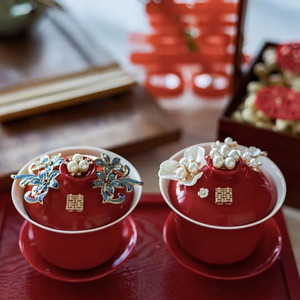 敬茶杯结婚喜碗套装敬酒茶杯改口对碗红碗一对碗筷红色婚礼龙凤