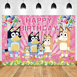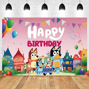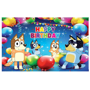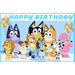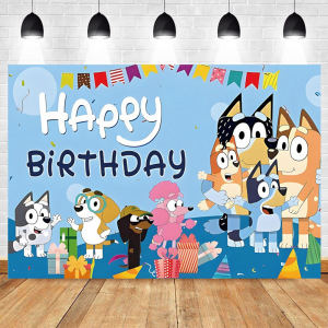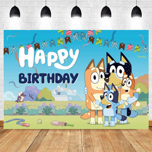 跨境布鲁伊卡通蓝色狗背景布儿童生日主题拍照摄影背景布装饰横幅
