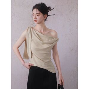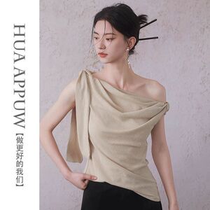 画朴法式高级斜肩背心女2025夏季新款绑带不规则收腰短款显瘦上衣