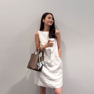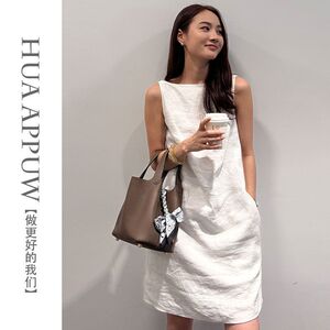 画朴法式白色U领肌理感连衣裙女2025夏季新款简约宽松吊带背心裙