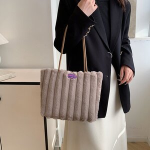 韩版秋冬毛绒托特包大容量腋下手提包女时尚通勤女包休闲单肩女包