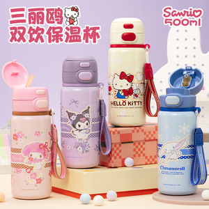 新款三丽鸥舒馨316不锈钢保温杯高颜值男女双饮吸管卡通可爱水杯