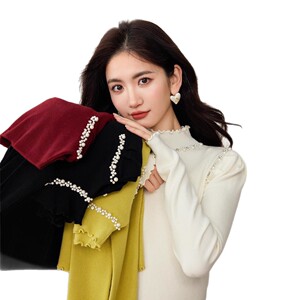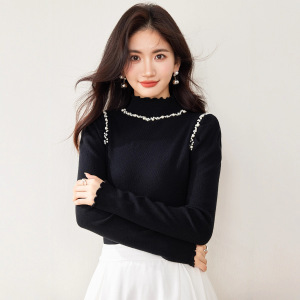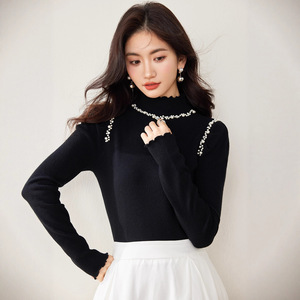 法式半高领时髦钉珠针织衫上衣女春秋新款修身气质内搭长袖打底衫