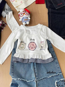 柠里女童韩版春秋季洋气长袖T恤新款儿童宝宝百搭卡通打底衫上衣