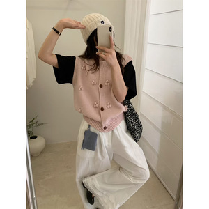 高级感立体毛球针织马甲背心女外搭2025秋季新款宽松无袖毛衣马夹
