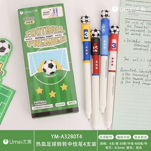 尤美热血足球转转中性笔创意学生书写旋转出芯黑顺滑速干水笔