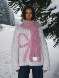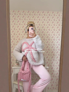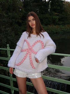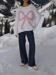 2025外贸欧美秋冬毛衣女亚马逊跨境宽松圆领手摇绣蝴蝶结套头上衣