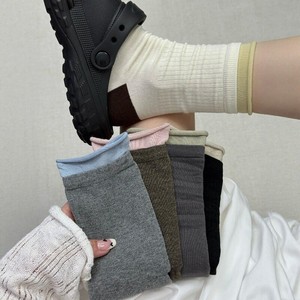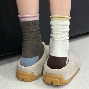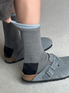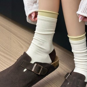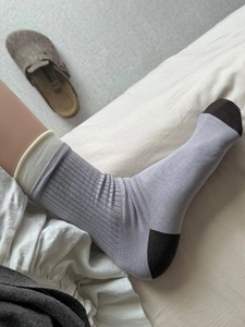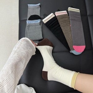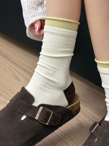 撞色假两件中筒袜子女春秋小众时髦双层拼色竖条长筒显瘦堆堆长袜
