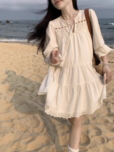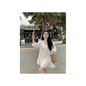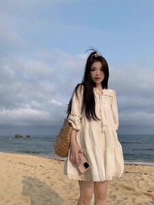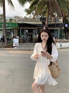 法式白色泡泡袖衬衫连衣裙女新款春夏小个子长袖云南旅游穿搭