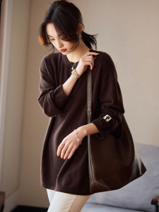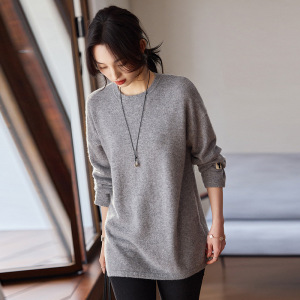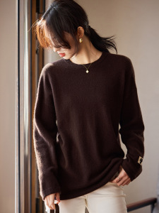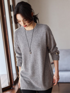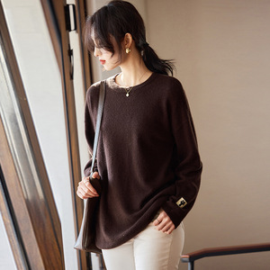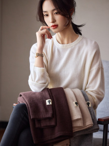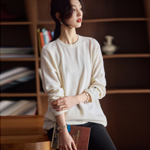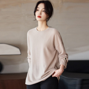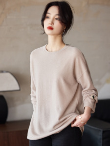 2025早秋新款圆领纯羊毛针织衫女宽松百搭毛衣韩系时尚打底衫上衣