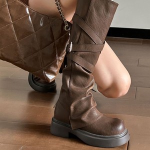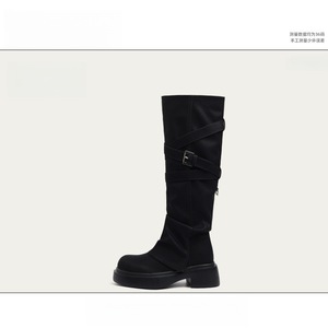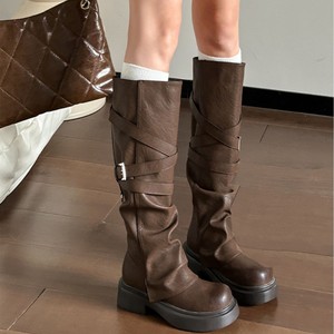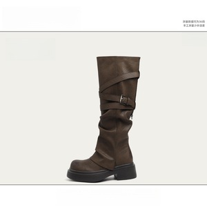 软皮版~美拉德复古厚底长筒靴女秋冬新款高筒靴不过膝绑带骑士靴