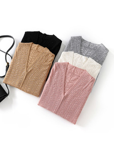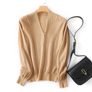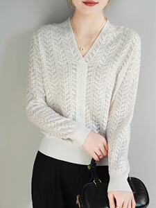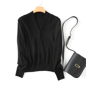 纯色简约v领羊毛针织衫软糯气质内搭秋季新款女装镂空网纱t恤上衣