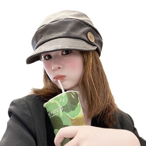 日系复古贝雷帽皮质八角帽女春秋小众文艺显脸小百搭报童帽画家帽