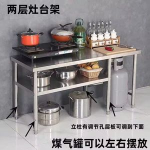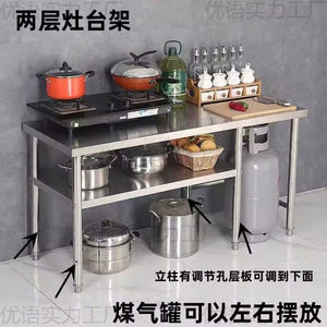 304不锈钢灶台架厨房煤气灶架子切菜剁肉操作台可放煤气罐工作台