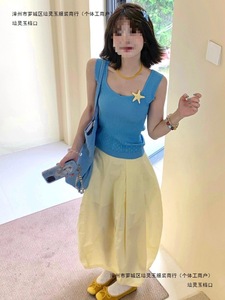 套装女2025夏季韩系减龄无袖吊带针织T恤上衣高腰半身裙两件套潮