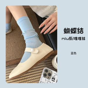 春夏芭蕾风蝴蝶结堆堆袜miu系少女袜子学院风韩版长筒袜防臭女袜