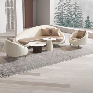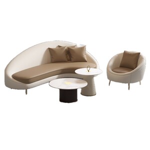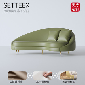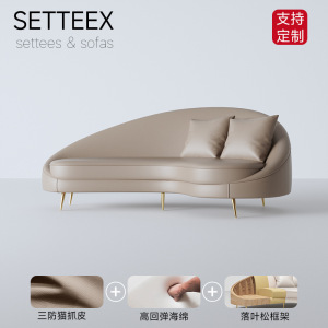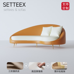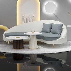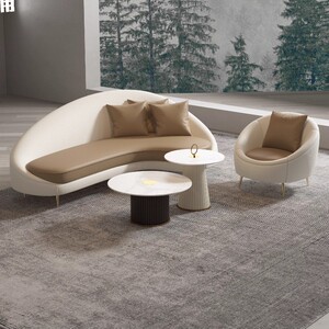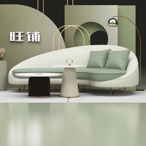 轻奢弧形创意科技布美容院接待会所展厅会客洽谈三人四人沙发组合
