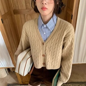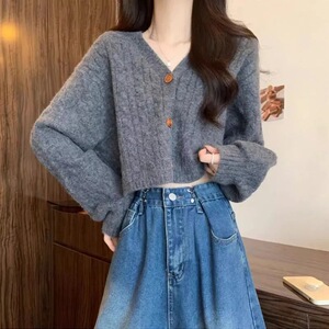 短款复古宽松针织显瘦纯色外套麻花长袖毛衣秋冬上衣慵懒新款开衫