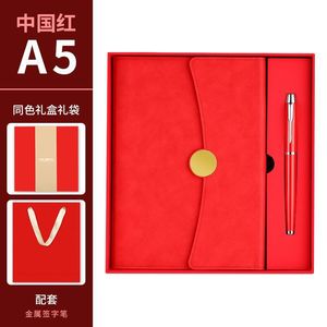 a5高颜值仿皮三折笔记本商务办公记事本套装高档文具用品可印log