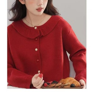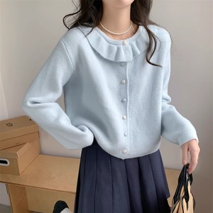 跨境韩系学院风温柔好看娃娃领宽松外穿甜美减龄针织开衫毛衣外套
