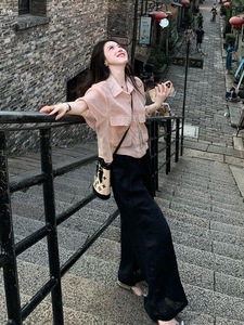 夏装穿搭一整套气质高级感巨好看绝美短袖衬衫休闲阔腿裤棉麻套装