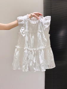 法式白色小飞袖衬衫女夏2025新款设计感甜美边无袖娃娃衫百搭上衣