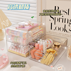 桌面收纳盒化妆品整理筐宿舍零食小杂物塑料长方形亚克力透明盒子