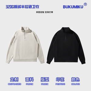 320g抓绒半拉链卫衣定 制薄绒男女美式复古潮流加绒秋冬卫衣外套