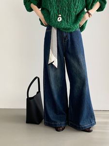 那末 自留~复古松弛感慵懒大筒阔腿裤女高腰垂感水洗牛仔裤Z3615