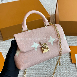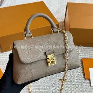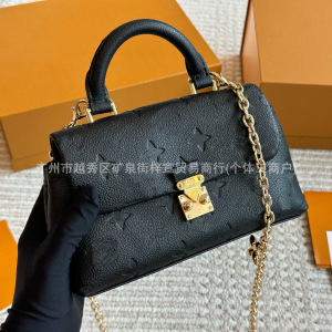 外贸新款真皮压花链条翻盖手提包高级质感单肩斜挎女包法棍包驴家