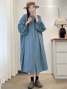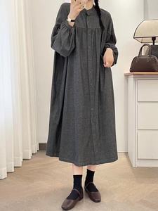 日系森系棉质拼接连衣裙秋季新款减龄宽松百搭显瘦灯笼袖中长裙子
