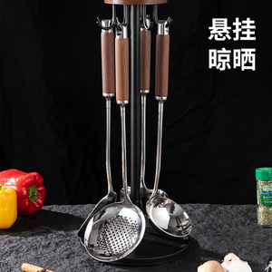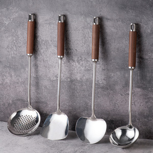 304不锈钢锅铲蘑菇铲锅铲木柄把手厨房铲勺炒菜铲子漏勺厨具 爆款